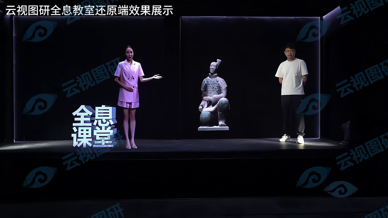 作为虚拟现实教育的新兴力量,云视图研全息教室本身就具备着区别于传统VR/AR教育的独特优势。它摒弃了笨重的头戴式设备,通过前沿的光学材料和专利技术,实现了裸眼3D的高立体、沉浸式虚实空间融合。在云视图研打造的全息智慧教室中,学生无需佩戴任何辅助工具,仅凭肉眼就能看到悬浮在空中的3D影像,既避免了长期佩戴设备可能带来的眩晕和疲劳,又打破了传统虚拟教育中人与人之间的物理隔阂,保留了课堂教学中最宝贵的师生眼神交流与情感互动。此次新增的拍照生成3D模型功能,更是与云视图研原有的全息采集端、全息还原端、全息三维引擎等软硬件系统形成了完美的闭环。从全息人像的实时传输到教学模型的快速生成,云视图研构建了一个全方位、多维度的3D虚拟教学空间,将教育数字化推向了一个全新的高度。