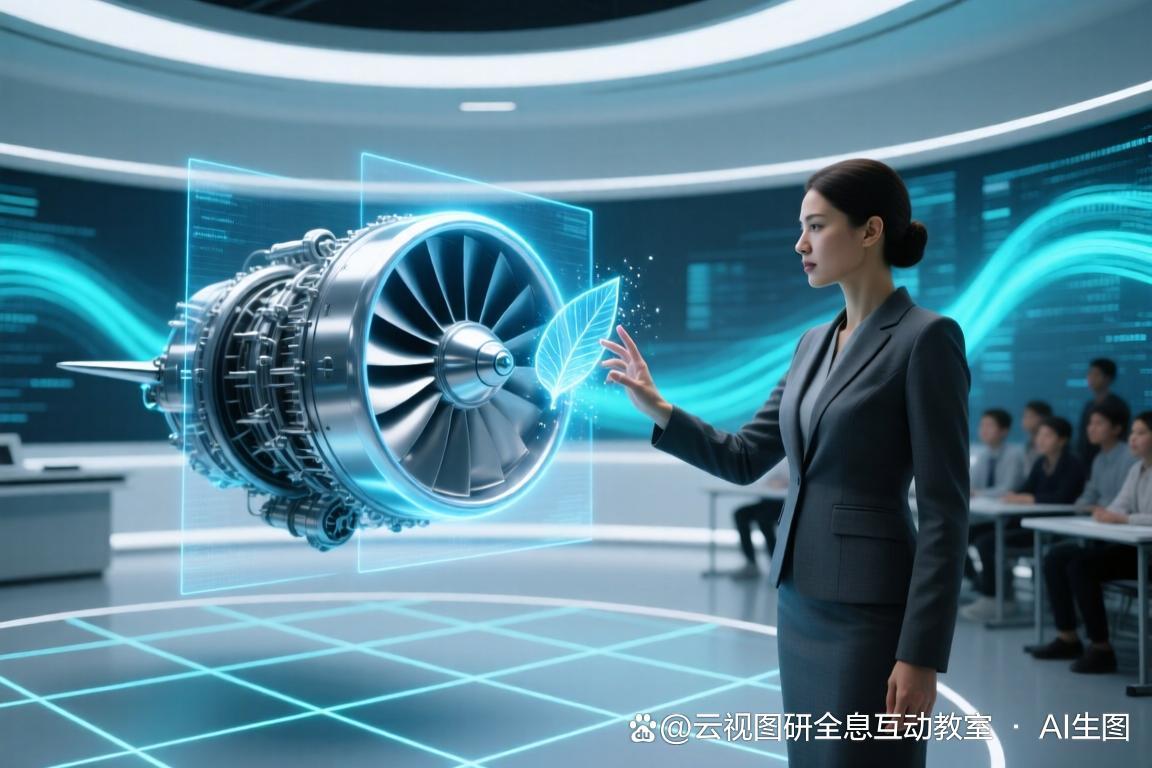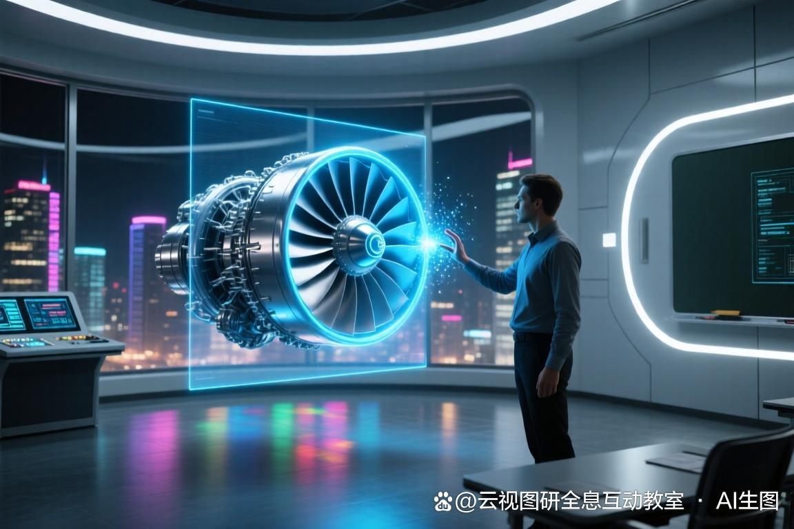 在演示现场,一位机械专业的教师正在讲解复杂的航空发动机构造。只见他伸手向空中的发动机全息影像“抓”去,手指轻轻一捏,一枚精密的涡轮叶片便被“取”了出来,悬浮在他的指尖。随着他手腕的翻转,叶片也随之360度旋转,细节纹理清晰可见。紧接着,他双手向外一扩,整个发动机瞬间“解体”,数百个零部件按爆炸图排列在空中。这种“隔空取物、挥手即来”的操控体验,不仅极其流畅自然,更让在场的师生感受到了前所未有的掌控感。