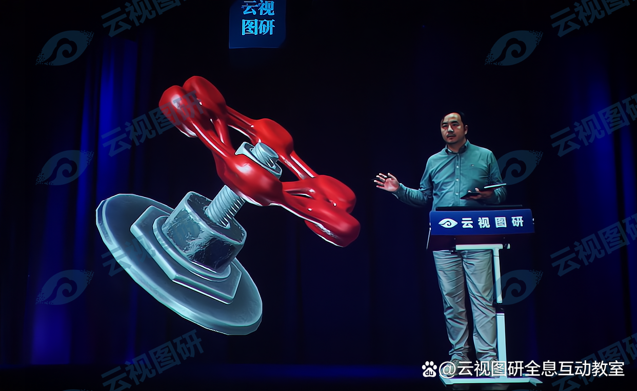 在全息教室中,复杂结构、施工流程与装备构型可以 1:1悬浮呈现,实现结构剖析与构件受力讲解、工程工序动态推演、装备零部件拆解与装配逻辑展示、水利、港口与海洋装备运行场景复现。