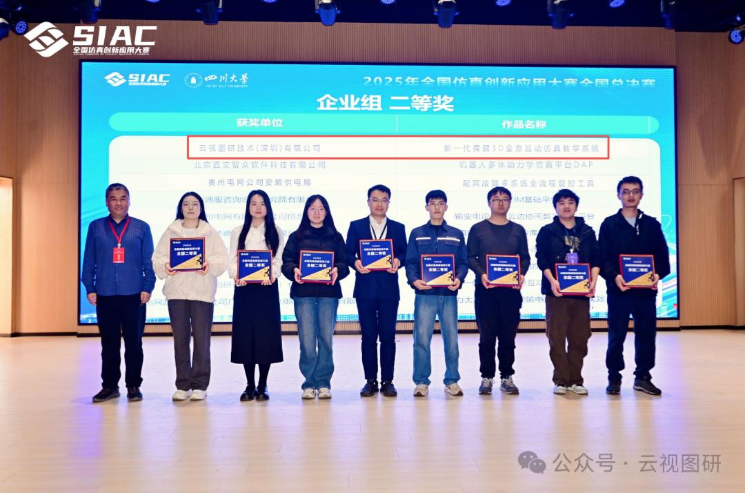 2025年11月22日,在四川大学举办的“2025年全国仿真创新应用大赛”全国总决赛上,云视图研技术(深圳)有限公司凭借其在全息仿真教学领域的卓越创新成果,从全国近500支晋级队伍中脱颖而出,斩获企业组全国总决赛二等奖!