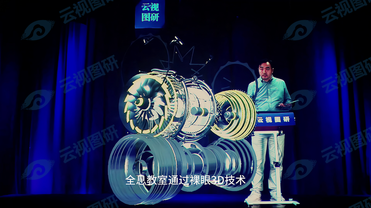 根据“云视图研”等前沿实践案例,全息教室最大的突破在于实现了裸眼3D沉浸式体验。它“突破了传统VR、AR、MR等穿戴式虚拟教育设备的局限”,学习者无需佩戴任何设备,即可用肉眼看到悬浮于真实空间中的1:1三维影像。这种“所见即所得”的真实感,对于职业教育中涉及复杂空间结构、精密内部构造的专业(如机械、建筑、医学)具有不可替代的价值。例如,在讲解一台精密发动机时,教师可将其全息影像置于讲台中央,进行任意角度的旋转、缩放和“凌空”拆解,将每一个零部件的细节、装配关系清晰地呈现在学生眼前,实现了知识的“具象化”和“情景化”。