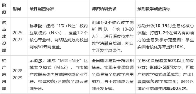 中期评价(2027年):应能提交至少1个专业群的全息教学改革完整案例,包含课程标准、教学设计、评价方案和成效对比分析,证明其对“人才培养质量提升”的直接贡献。