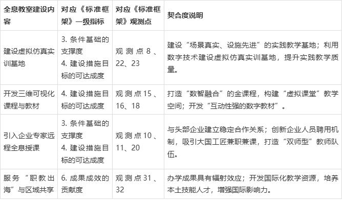 1. 全息教室建设与“双高”指标对应关系矩阵